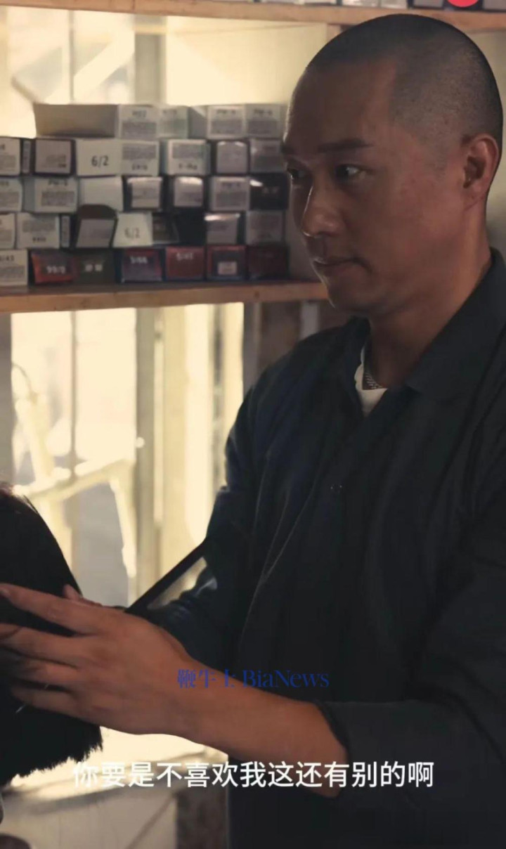 剪发店雇主莫得头发,他拿着剪刀,正对着一顶莫得脸的头发,良好的修剪着,嘴中频频嘟哝着,在说“如何样,若是不可爱,我这还有别的”、“诶,你等我一下”,也不知说念在跟谁对话。