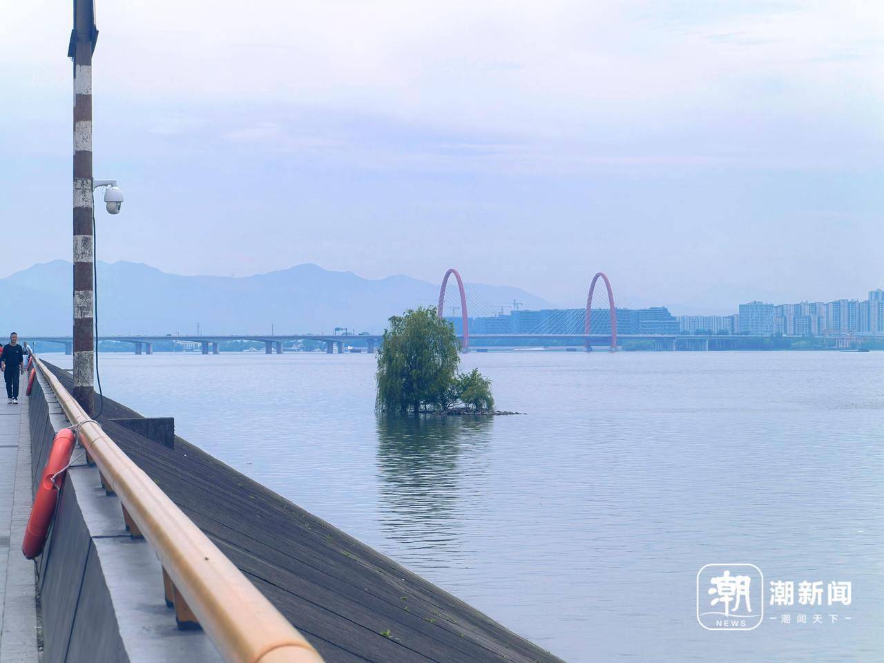 最近,杭州网友阿陆在钱塘江南岸、滨江最好意思樱花跑谈边,相逢了一棵“长”在江水里的柳树。