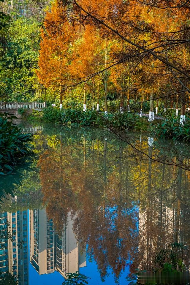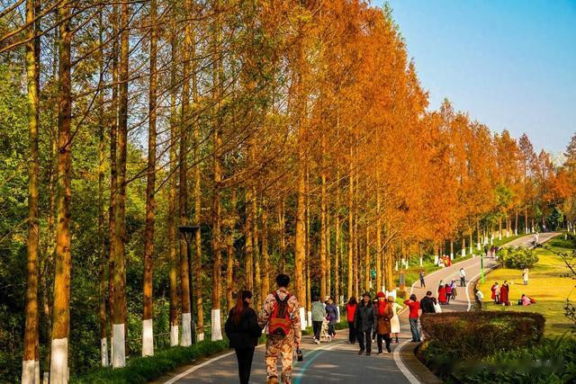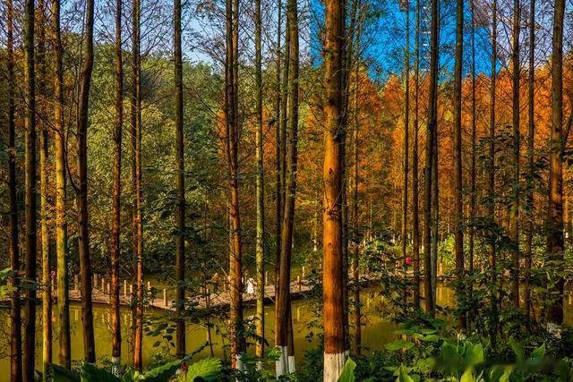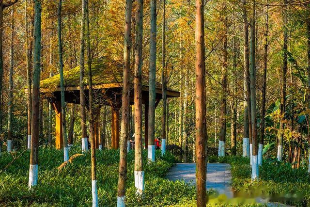 投入公园沿步说念前行即可,进公园便有一派水杉。这里有水有桥,有合影,很漂亮。