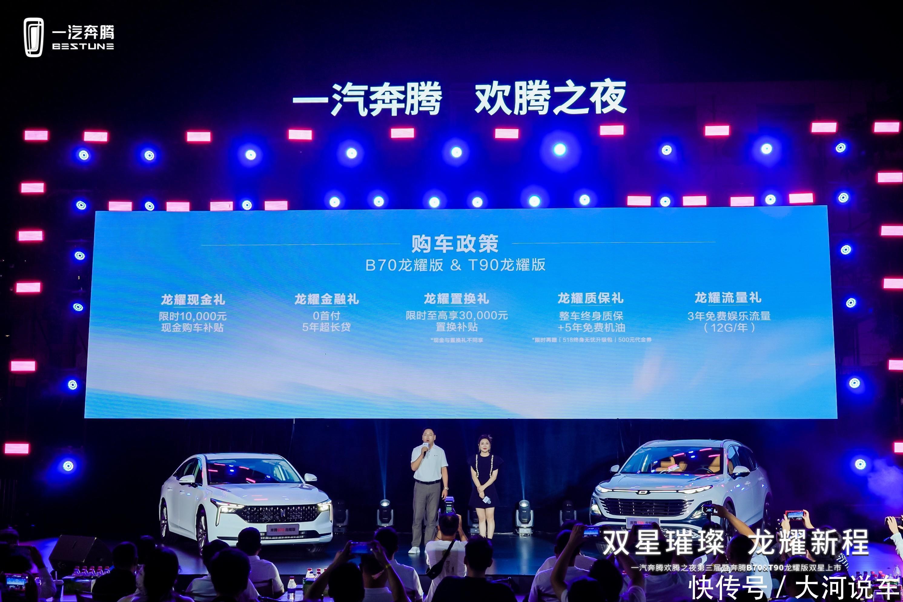 一汽奔腾一直深耕家庭用车商场,并在细分商场中占有一定的份额,就在9月上旬刚刚远离的秋季大河海外车展上,一汽奔腾凭借着订交103台的战绩得到了华夏东说念主民的认同。其竟然中级家轿商场,一汽奔腾B70不错称得上是10万元安全幽静的中级车优选,历经四代进阶,9月26日晚,这款车又提质加配,重磅焕新。一汽奔腾B70龙耀版、T90龙耀版在郑州宇宙上市,为家庭购车带来“越级品性双优选”,售价差别是9.88万-11.38万元和10.88万-13.88万元,同期还有一系列的限时职权,如限时10000元的现款补贴、流量礼等。