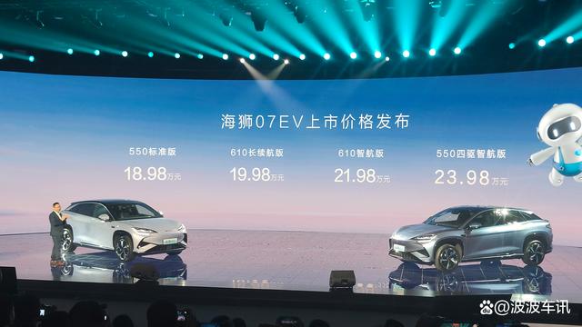 从售价表上看比亚迪海狮07EV的售价区间为18.98-23.98万元,新车有四款成立可弃取,有一款圭臬续航版以及两款长续航版和一款四驱版可弃取,合座可弃取性还是比拟丰富的。比亚迪海狮07EV的合座性价比弘扬可以,它具有一定的可玩属性,竞争敌手是特斯拉ModelY和小鹏G6。