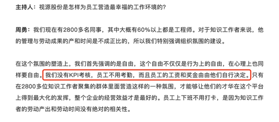 据媒体报说念,这家公司的职工高放工不打卡、莫得KPI探员、工资些许职工我方定、园区内还有为职工及家属自建的体检中心和幼儿园。原董事长周勇在2018年的访谈中也谈及此事。