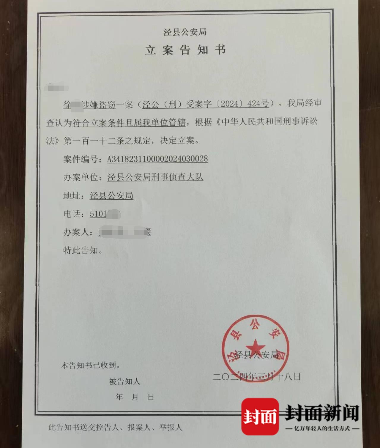 \n\t\t\t\t\t\t\t方女士收到的立案见告书(受访者供图)\n\t\t\t\t\t\t\t