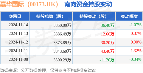 本站音问,11月14日南向资金减合手36.4万股嘉华海外(00173.HK)。近5个交游日中,获南向资金增合手的有3天,累计净增合手38.6万股。近20个交游日中,获南向资金增合手的有15天,累计净增合手213.9万股。截止现在,南向资金合手有嘉华海外(00173.HK)3350.09万股,占公司已刊行泛泛股的1.05%。