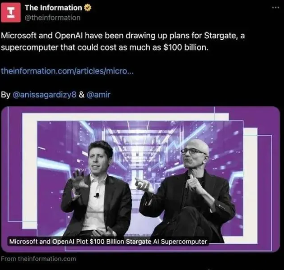 外媒猜想,这一举动不错是为了温暖之前放出的与微软共同打造的超等操办机「星际之门」的电力需求。这个将配备数百万专用的业绩器芯片的超等电脑瞻望资本将高达 1150 亿好意思元,而与如斯巨量资金进入相伴的,则是 5 千兆瓦的电力需求。
