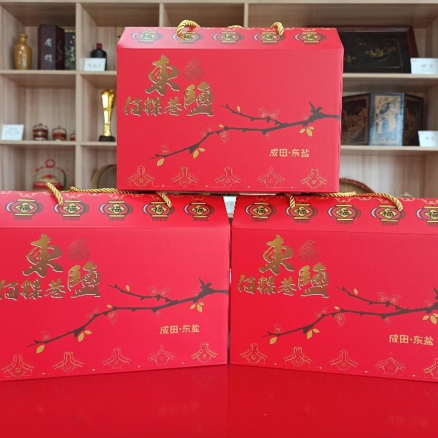 执行团成员本着对潮汕粿文化保护和传承的关切,围绕“家的滋味、东盐水乡,百粿飘香”主题,执行团成员凭证当地特质以及探求需求,探求出“喜桃”礼品包装盒居品,一款以中国红为底色,金黄色为辅,色调合作、喜庆祥瑞的包装。执行团成员先容,傍边为金色的镂空腹状红桃粿,代表着当地特质粿文化,中间呈现结满果实的树枝,通过该探求给以当地好意思好的祝福。