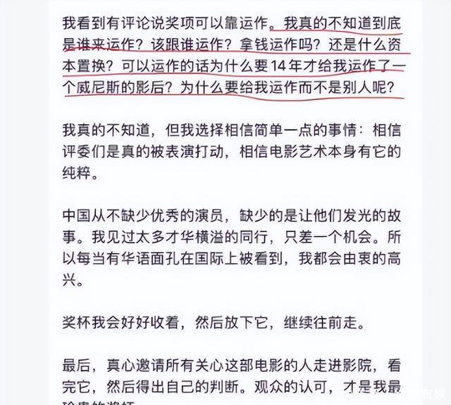 濒临这些质疑,辛芷蕾公开垦长文呈报,其中更是六连问,反驳巨匠质疑。 “我果然不知说念到底是谁来运作?该跟谁运作?拿钱运作吗?一经什么成本置换? 可以运作的话为什么要14年才给我运作了一个威尼斯的影后?为什么要给我运作而不是别东说念主呢?”