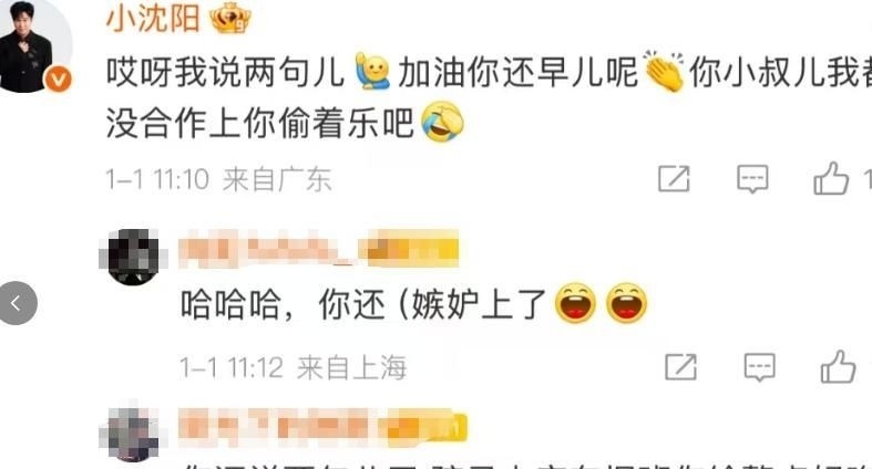 23. 小沈阳第一时期现身微博驳倒区,用嘲谑口吻试图调遣焦点,替男儿缓冲压力。