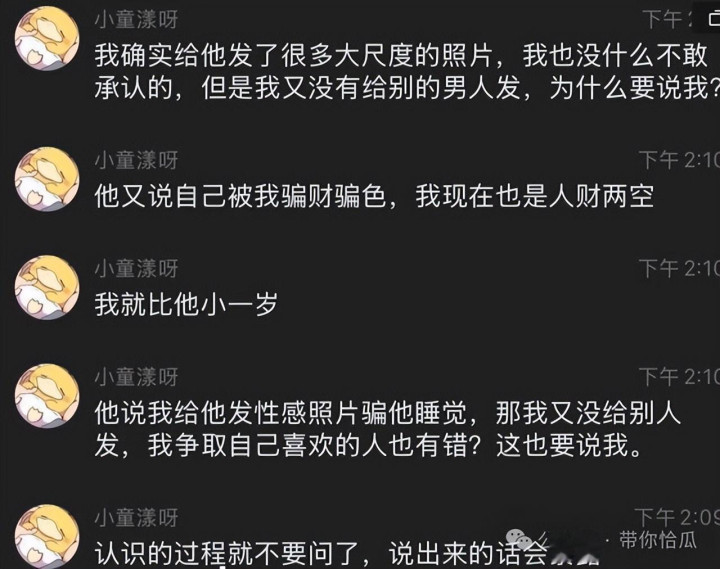 阿谁时间女方还不出名,当童锦程的事情曝光以后,男东说念主发现跟他网恋的阿谁东说念主的确是童锦程的孩子姆妈,这下他不淡定了。