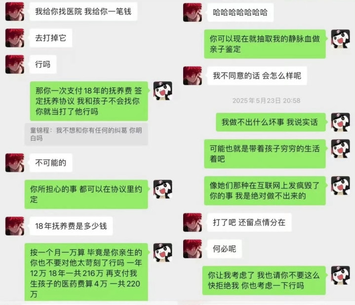 童锦程此前被曝条目互删微信“废弃字据”,尽管女方保存聊天纪录,但亲子玩忽永久未鞭策,法律层面事实未明。