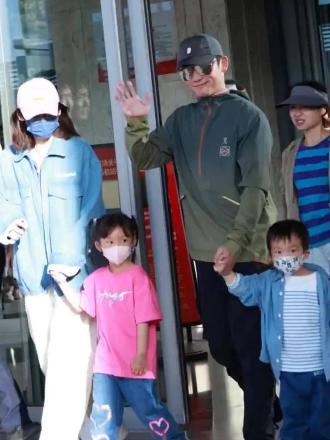 苗苗和郑恺把孩子们先奉上车,并跟现场粉丝挥手告别,随后一家四口驱车离开。