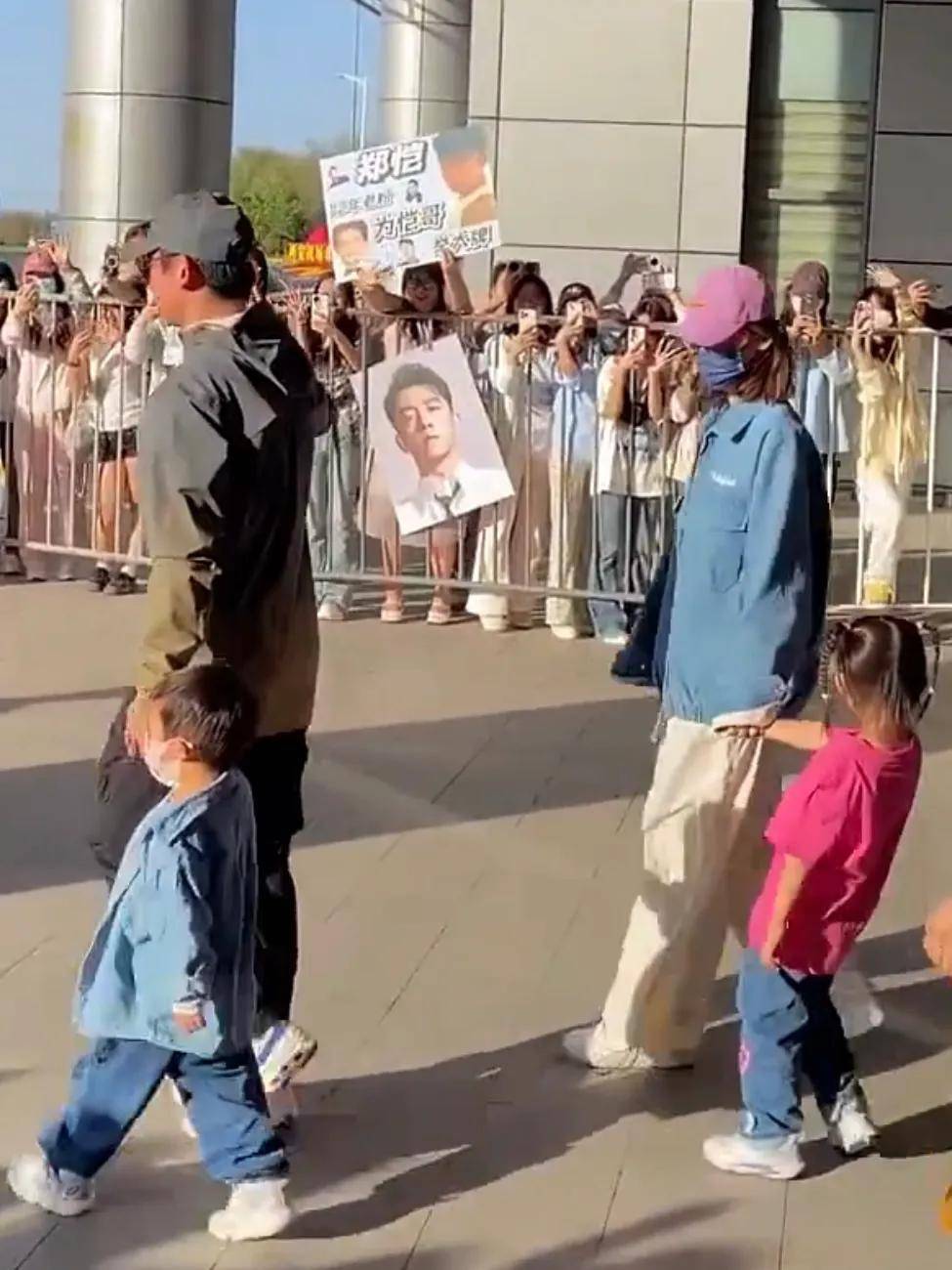 郑恺抵达西安录制跑男,身边还有配头苗苗以及一对女儿陪同,现场来了许多粉丝接机,一家四口一出现就引起粉丝们容许。