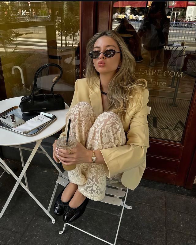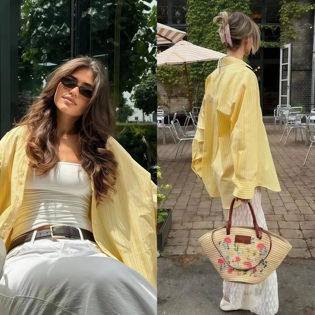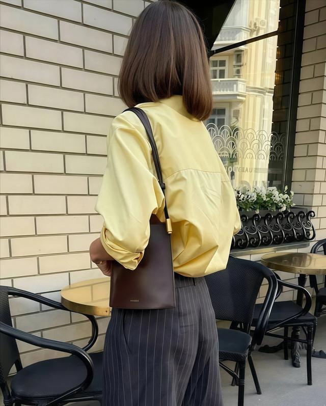 奶黄色衬衫,是春天最值得出手的第一件单品,但版型千万别选修身的,修身的奶黄色衬衫穿上身会显得很“工装”,气质一下全没了,是以,寰宇一定要选正肩诡计的H版型,通盘这个词东说念主看起来就很利落。