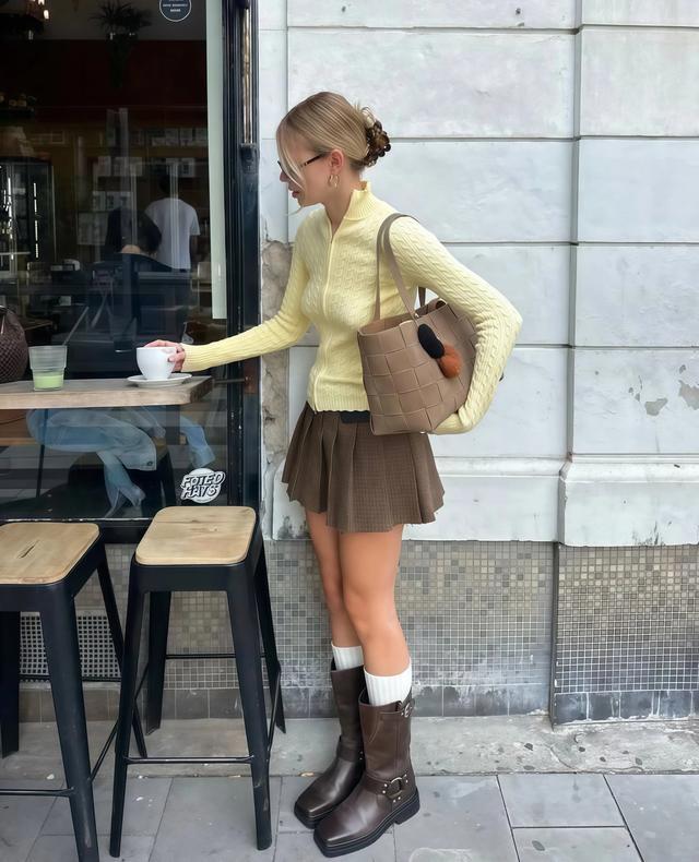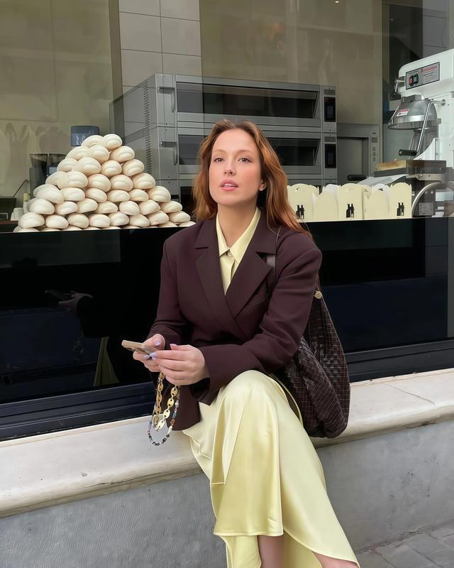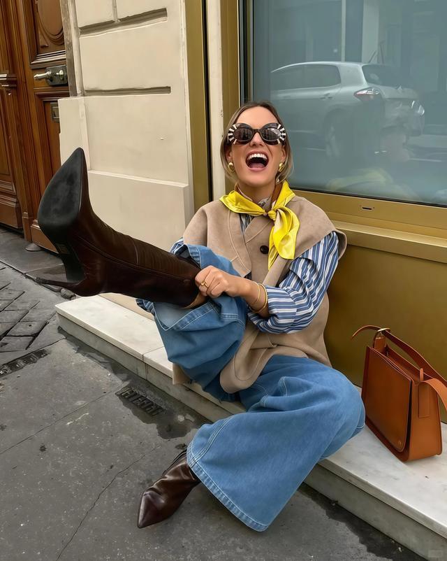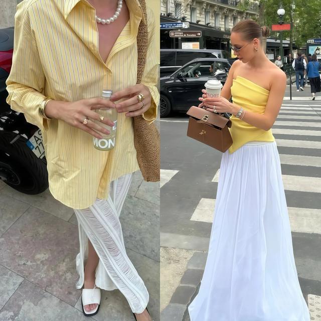 不是每个东说念主齐能收受大面积的奶黄色上身,这很肤浅,但你实足无谓烧毁这个情绪,用小面积的方法去穿它相似有成果,一条奶黄色丝巾系在脖子上,一只奶黄色包挎在肩上,以至一对奶黄色袜子浮现脚踝。