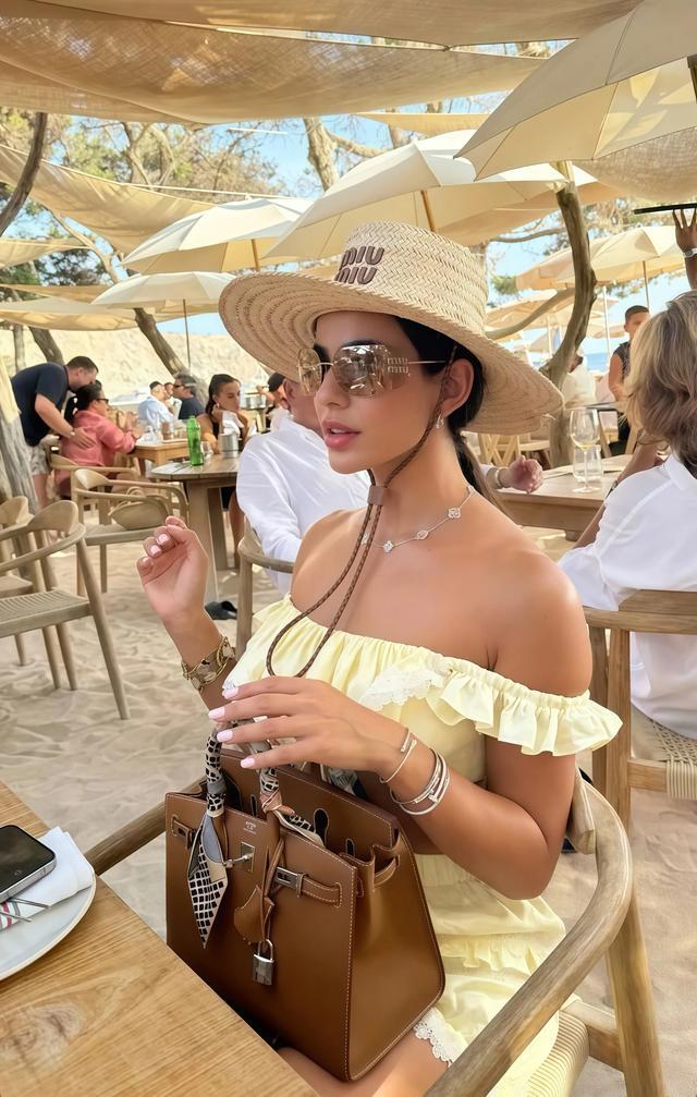 棕色和奶黄色,搭在全部有一种自然的配合感,但比纯碎的奶黄配白多了少许深度和千里稳。具体的穿法,不错是奶黄色连衣裙搭棕色西装,再配一只棕色的包,全身的色调在暖色系里流转,很有质感很耐看,何况这组配色对黄皮极度友好。