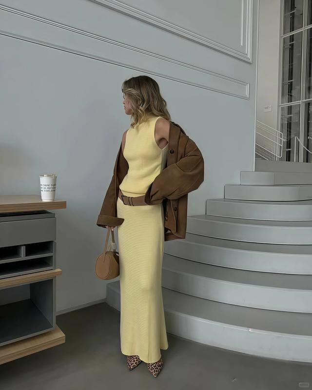许多东说念主一听到黄色就本能放弃,但奶黄色跟正黄色实足不是一趟事,“奶黄色”内部掺了多半的奶白调,饱和度也被压得很低,上身之后不会跟你的肤色打架,黄皮穿上去气色也会变得柔软起来。