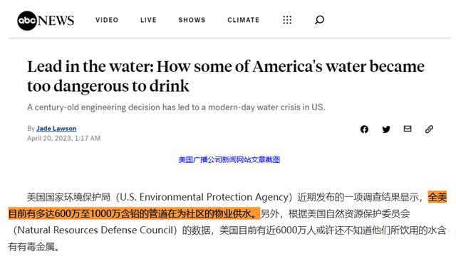 2. 好意思国近6000万东谈主不知我方喝的水含铅 饮用水管谈更新拖延数十年——中国日报