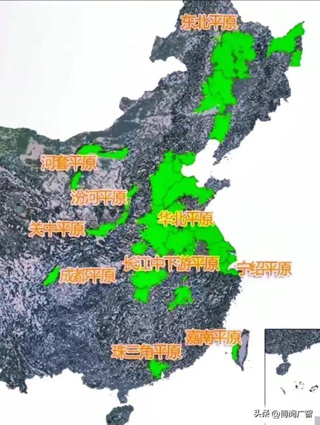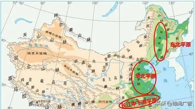 东北的黑地盘,是“耕地中的大熊猫”;华北平原,是我国的粮仓;长江中卑劣平原,是“天府之国”。