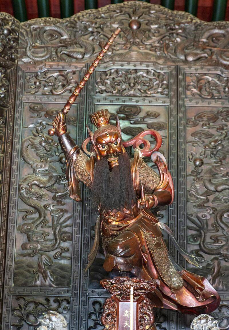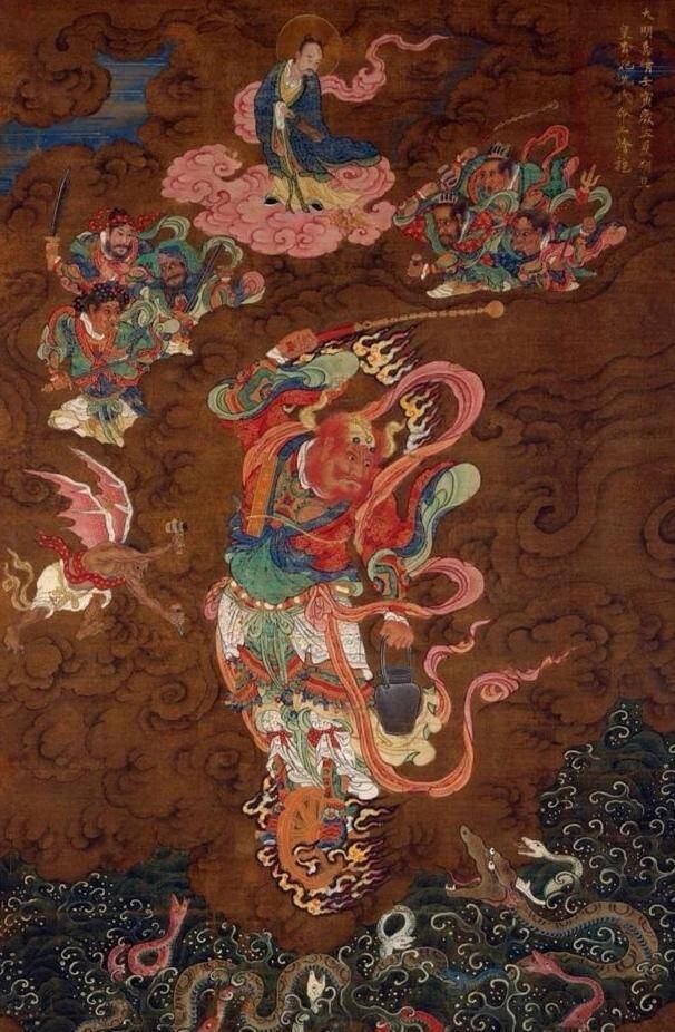王灵官,又号“太乙雷神应化天尊”,是玄门的护法神,同期亦然司职雷神和火神,为先天一炁所分化而来。这个王灵官脾性火爆、嫉恶如仇,正本是星宿神部的南斗星官,奉玉皇大帝之命对龙神的行雨布泽之事进行监督。有个老龙王高傲阅历高,贻误了布雨的时辰,王灵官一气之下将它鞭死之后剥皮抽筋,并将它缠绕在腰间。玉皇大帝异常愤怒,就将王灵官贬下阳世,成为了湘阴浮梁的庙神。
