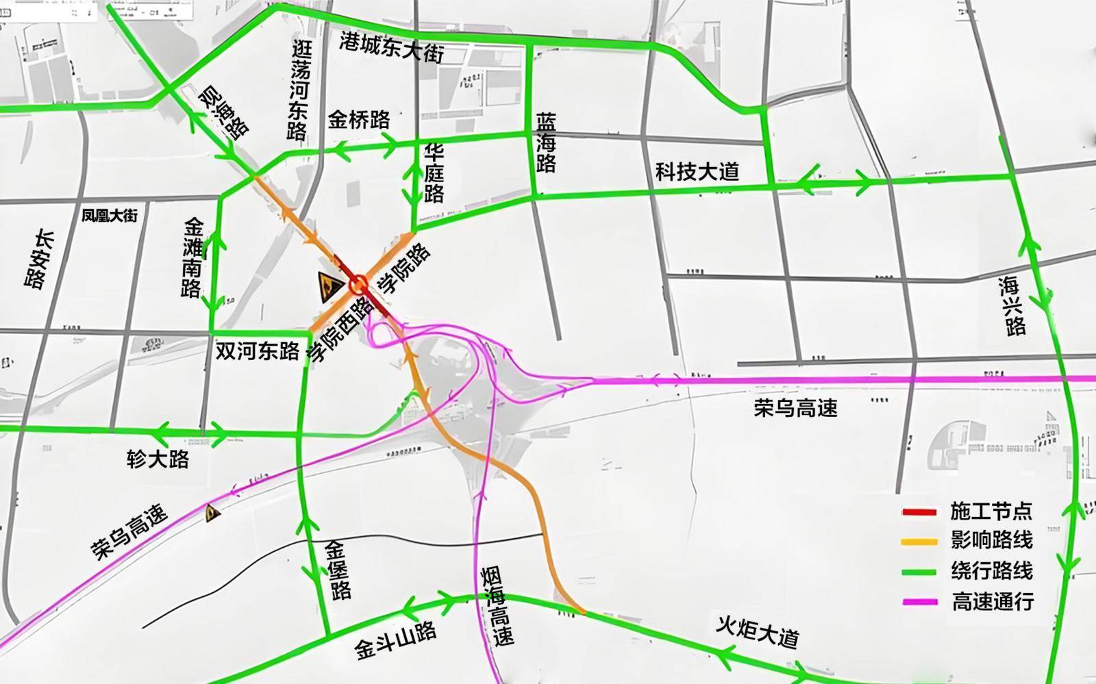 莱山区不雅海路与学院西路交叉口是烟台市区一处伏击交通关节,周围东说念主口多、车流量大。记者了解到,自5月7日起,因轸格庄立交不雅海路-学院路节点工程拓荒需要,继工程前期北口闭塞、保留两侧匝说念通行后,施工区域南口也开动路中闭塞功课,认识至2026年10月底完工,将给市民出行酿成未便。